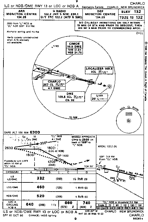 Note : Extrait du Canada Air Pilot . Ce document n'existe pas en français.