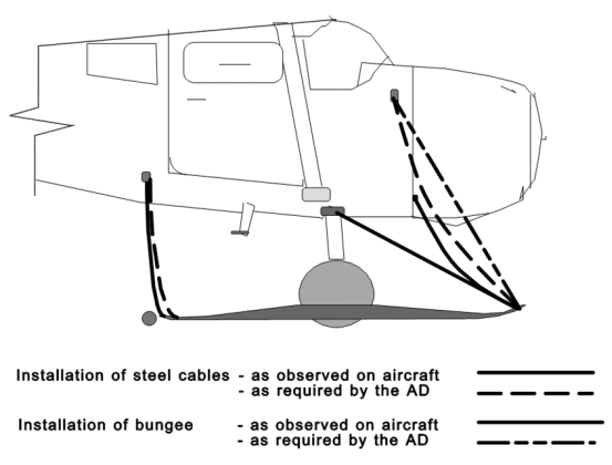 - La consigne de navigabilité CF-80-18 concernant l'installation des câbles d'acier et des extenseurs n'avait pas été exécutée.