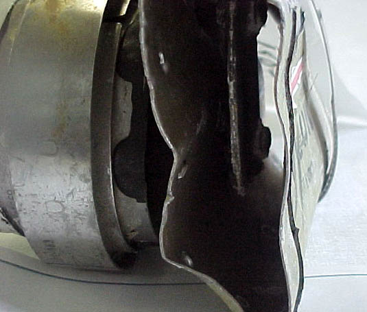 On a déterminé que la légère marque en forme d'arc sur le dessous de l'une des pièces brisées avait été causée par le contact avec la bride du boîtier du moteur. En raison de la faible profondeur de la marque, on n'a pu déterminer si celle-ci avait été causée par la rotation ou par une rupture en flexion de la bride.