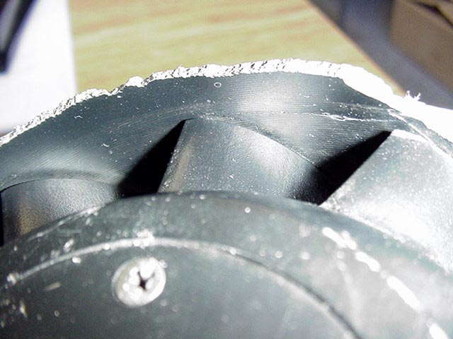 L'intérieur du carter du ventilateur présentait des empreintes distinctes au niveau du passage de l'extrémité des aubes du ventilateur.