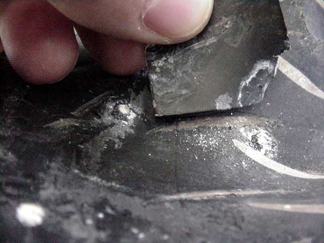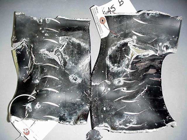 L'intérieur du carter du ventilateur, près de la voie de passage des aubes du ventilateur, était aussi gravement corrodé. Toutefois, aux endroits où le revêtement de surface avait résisté, on pouvait observer de légères marques de rotation.