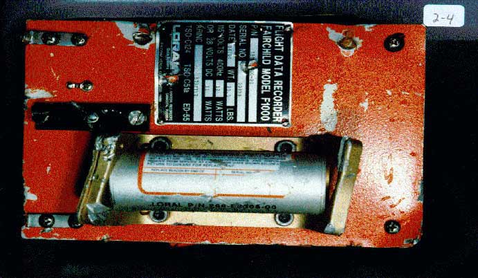 L'enregistreur de données de vol (FDR) de l'avion a été repêché par des plongeurs le 6 septembre 1998 dans environ 50 m d'eau. Il a été apporté sous escorte au Laboratoire technique du Bureau de la sécurité des transports (BST) à Ottawa pour y être analysé. On l'a placé dans un contenant rempli d'eau distillée pour réduire le risque d'oxydation à la suite de son immersion dans l'eau salée.