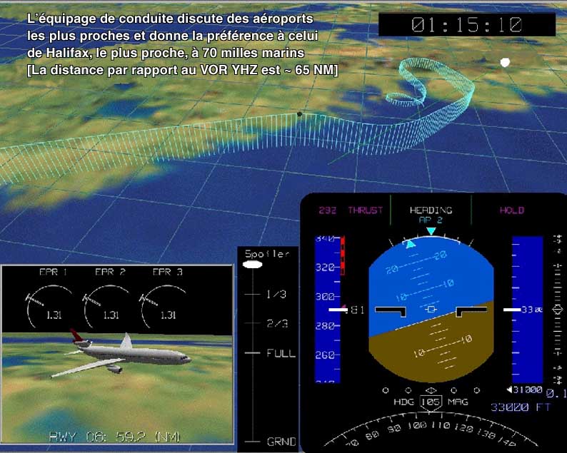 Pendant le déroutement vers Halifax, les paramètres discrets numériques avaient enregistré que tous les groupes de conditionnement d'air et toutes les vannes de régulation de prélèvement d'air avaient continué de fonctionner jusqu'à la fin de l'enregistrement (échantillonné toutes les 4 secondes). La Liste de vérifications de Swissair en cas de fumée dans le système de conditionnement d'air avait été mentionnée par l'équipage sur l'enregistrement de la parole dans le poste de pilotage, mais on ne sait pas si cette liste avait été exécutée. Cette liste de vérifications nécessite que plusieurs combinaisons de groupes de conditionnement d'air et de vannes de régulation de prélèvement d'air soient arrêtés à tour de rôle afin que soit isolée la source de la fumée. Les données discrètes indiquaient que les groupes de conditionnement d'air et les vannes de régulation de prélèvement d'air avaient continué de fonctionner, mais il est possible que ces données aient été invalides (ou figées) pendant la dernière minute de l'enregistrement.