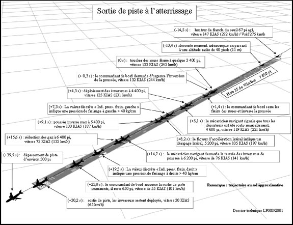- La piste était recouverte d'une mince couche de neige folle qui a réduit l'efficacité du freinage et rallongé la course à l'atterrissage.