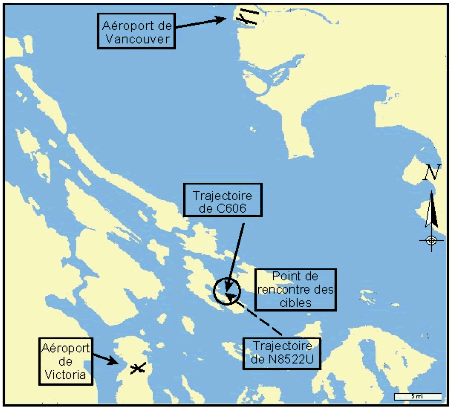 Le Cessna 172 immatriculé N8522U et portant le numéro de série 17252422 effectuait un vol entre Arlington (Washington) et Nanaimo (Colombie-Britannique). L'avion volait selon les règles de vol à vue (VFR) à une altitude de 4500 pieds asl (au-dessus du niveau de la mer) et se dirigeait vers le nord-ouest. Au contact initial, le contrôleur de la région terminale de Victoria (YYJ) a donné à l'appareil un code transpondeur, l'a identifié au radar et a approuvé sa demande pour se rendre à Nanaimo. Environ une minute plus tard, le de Havilland DHC-6 (Twin Otter) de West Coast Air ayant l'indicatif d'appel C606 et portant le numéro de série 94 est entré en communication avec le contrôleur terminal d'YYJ. Le Twin Otter a été identifié au radar et sa demande pour se rendre à Victoria Harbour à une altitude de 4500 pieds asl sur un cap sud-sud-ouest a été approuvée.