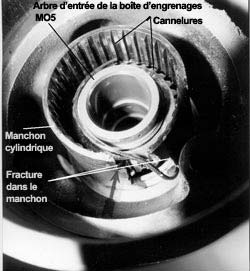 - Le moteur a subi une perte de puissance quand le manchon cylindrique assurant la liaison entre la turbine de travail et le réducteur s'est rompu.