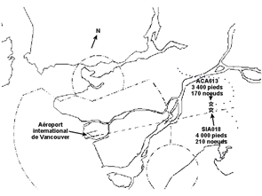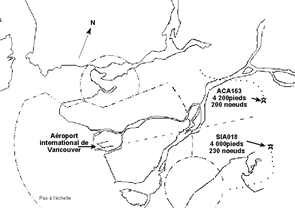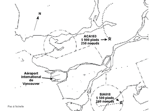 Le Boeing 767-200 du vol 163 d'Air Canada (ACA163) arrive à Vancouver par le nord-est et se trouve sous guidage radar en prévision d'un atterrissage sur la piste 26R. Au même moment, l'Airbus A340-300 du vol 018 de Singapore Airlines (SIA018) arrive par le sud-ouest et se trouve sous guidage radar en prévision d'un atterrissage sur la piste 26R. Au moment où ACA163 se trouve en étape de base à droite en train de descendre d'environ 4 800 pieds à 3 000 pieds, SIA018 est établi en étape de base à gauche, en palier à 4 000 pieds. Pendant le virage en finale, une perte d'espacement se produit, et les deux avions se rapprochent à moins de 600 pieds et de 1½ mille marin avant que l'espacement exigé ne soit rétabli.