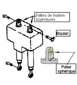 Une fois le vérin du compensateur posé entre les profilés de montage à la cellule, la partie située derrière les pattes de fixation n=est plus visible. En regardant de face, les têtes et les écrous des boulons sont alignés à l=extérieur des profilés, mais il est difficile de juger si les boulons passent dans les pattes de fixation ou derrière celles-ci. Une fois les boulons posés, les pattes de fixation sont cachées derrière les profilés. Il n=y a aucun repère d=alignement sur les côtés du vérin ou sur les profilés de la cellule permettant de s=assurer du bon positionnement du vérin.