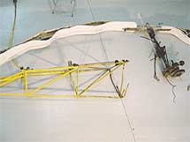 Plusieurs recherches ont été menées sur le lieu de l'accident et dans le voisinage immédiat. Des morceaux éparpillés de la verrière en goutte d'eau et de la structure tubulaire de la poutre de queue en acier 4130 ont été trouvés à un demi-kilomètre de l'épave principale. La section de la structure de la poutre de queue comprise entre les références 214 et 241 a été trouvée avec le boîtier d'engrenages du rotor de queue toujours fixé à son attache, à 40 mètres de l'épave principale. Le rotor de queue, qui s'était détaché au niveau de l'arbre du boîtier d'engrenages, a été trouvé à environ 100 mètres de l'épave principale. L'analyse de l'arbre rompu a révélé une défaillance en surcharge. La structure de fixation du stabilisateur (photo 1) s'était rompue de la poutre de queue et elle a été trouvée près de la section de la structure de la poutre de queue comprise entre les références 214 et 241. Un morceau de longeron du stabilisateur était toujours relié à la structure de fixation. Ce morceau de longeron de stabilisateur présentait une fracture complète au premier trou de rivet de l'emplanture. Malgré plusieurs recherches dans la zone située sous la trajectoire de vol et autour de celle-ci, le stabilisateur lui-même n'a pas été retrouvé. Une analyse de la fracture a révélé la présence d'une crique de fatigue sur 75 % de la circonférence du tube longeron (photo 2); le reste s'était rompu en surcharge. On n'a pas trouvé le stabilisateur, mais celui-ci était toujours fixé à l'hélicoptère à la fin du vol précédent.
