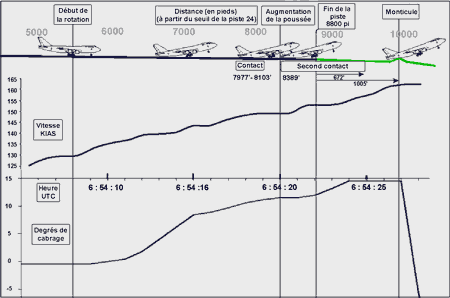 Au moment de la rotation, il y a eu un bref contact de la partie inférieure du fuselage arrière avec la piste. Quelques secondes plus tard, il y a eu un second contact, plus violent cette fois-ci, de la partie inférieure du fuselage arrière avec la piste. L'avion a poursuivi sa course au sol et a finalement quitté le sol 825 pieds après l'extrémité de piste. Après avoir quitté le sol, il a volé sur 325 pieds, puis la partie inférieure du fuselage arrière a percuté un monticule de terre où était fixée une antenne du radiophare d'alignement de piste du système d'atterrissage aux instruments (ILS). La partie arrière de l'avion s'est détachée du fuselage sous le choc, et le reste de l'appareil a poursuivi sa course en vol sur 1200 pieds avant de percuter le relief et de prendre feu. L'impact final s'est produit par 44° 52′ 51″ de latitude Nord et 063° 30′ 31″ de longitude Ouest, à quelque 2500 pieds au-delà de l'extrémité départ de la piste 24, à une hauteur de 403 pieds au-dessus du niveau de la mer (asl). L'avion a été détruit par le choc et par l'incendie qui a suivi. Tous les occupants de l'avion, soit les sept membres d'équipage, ont perdu la vie dans l'accident.