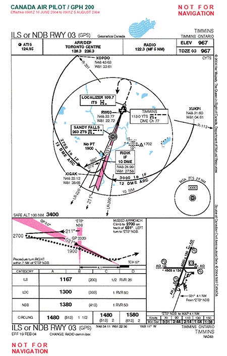 L'avion décolle d'Earlton (Ontario) et monte à 10 000 pieds au-dessus du niveau de la mer (asl)Note de bas de page 1. Le vol en croisière dure quelque 13 minutes, puis l'équipage amorce la descente en vue de l'approche vers Timmins (Ontario). À une altitude d'environ 5000 à 6000 pieds asl, l'avion entre dans les nuages où il rencontre du givre blanc légerNote de bas de page 2. Le reste de la descente et de l'approche, y compris le décrochage et la sortie de décrochage, se déroule dans des conditions météorologiques de vol aux instruments (IMC). Pendant la descente et l'approche, le givrage devient modéréNote de bas de page 3. En franchissant 4700 pieds asl en descente, l'équipage sort les volets en position d'approche. L'avion se dirige directement vers RIDIK, le repère initial du système de positionnement mondial (GPS) de l'approche ILS (système d'atterrissage aux instruments) situé à une dizaine de milles de l'aéroport de Timmins (voir l'annexe A). Le pilote automatique est en mode système de gestion de vol (FMS) et dirige l'avion vers le point de cheminement GPS sélectionné.
