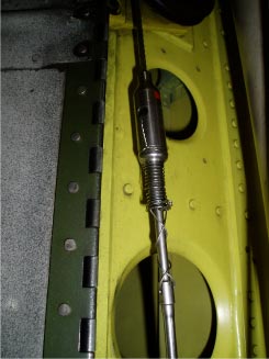 L'enquête a révélé qu'après le montage initial de la poutre de queue, le TEA a suivi les procédures du manuel de maintenance, mais qu'il n'a freiné au fil que le raccord rapide, et non la partie filetée du tendeur rapide. La dernière partie des instructions indique ce qui suit : [Traduction] « Freiner au fil les tendeurs rapides de la façon indiquée sur la Figure 7-32. Vérifier le système complet de commande de pas du rotor de queue pour s'assurer de sa bonne fixation, de sa liberté de mouvement et de son freinage ». On a examiné les instructions du manuel de maintenance, et on a constaté qu'elles étaient suffisantes pour la tâche. Lorsqu'un tendeur rapide est correctement freiné au fil, un bout de fil-frein freine l'extrémité rotule à démontage rapide et un autre bout freine l'extrémité filetée (voir la Photo 2). L'erreur commise dans le freinage au fil a été reproduite dans les inspections Partie A ultérieures. En outre, l'enquête a révélé que le trou permettant au fil-frein de traverser l'extrémité filetée du tendeur rapide était petit et partiellement caché par un ressort.