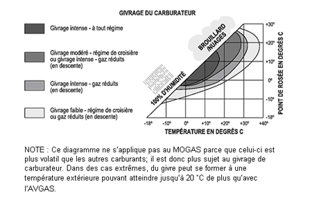Le tableau suivant décrit les différentes température et humidité relative qui peuvent produire le givrage du carburateur.