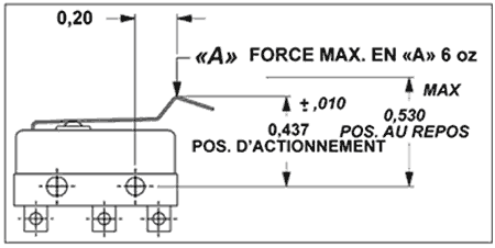 | Référence de contact | Force (oz) | Point d'actionn. (po) |