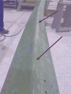 - Une crique de fatigue est apparue et s'est propagée dans l'arrondi de la cornière de fixation gauche, à la référence fuselage (FS) 577, ce qui a entraîné une défaillance de ce composant. La réparation de la cornière de fixation gauche de l'aile au fuselage qui avait été accomplie en 1987 à la FS 497 a prolongé la durée de vie en service de ce composant alors qu'il n'existait aucune méthode adaptée de détection des criques à la FS 577.