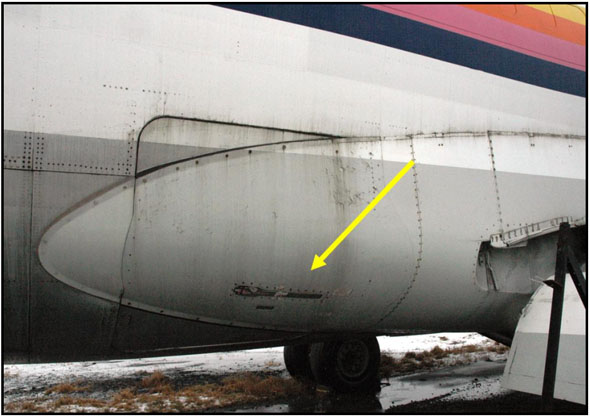 Après l'atterrissage, une inspection de la porte de soute arrière et de la structure de cellule a révélé que la charnière avant de la porte avait plié vers l'arrière en raison de la charge aérodynamique subie par la porte ouverte en vol. La porte, la structure du cadre de porte, la structure immédiate de la cellule et les mécanismes de verrouillage n'ont pas été endommagés. L'inspection et les essais de fonctionnement du voyant d'avertissement de la porte de soute arrière n'ont révélé aucune anomalie, tout comme l'inspection visuelle et endoscopique du moteur numéro 3.