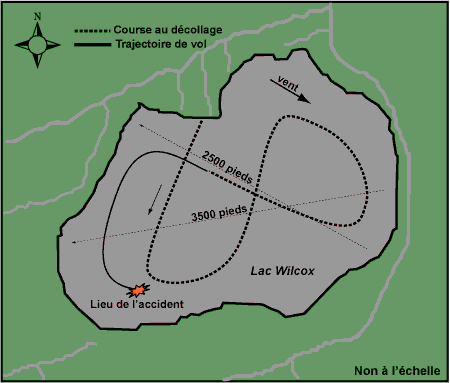 Le lac Wilcox est un petit lac situé dans la zone résidentielle de Richmond Hill. La rive est entourée d'immeubles d'habitation et, au-delà de ceux-ci, de nombreux lotissements. Le lac est populaire pour ses activités récréatives, comme la natation, la navigation de plaisance et le canotage. Lors de l'accident, il y avait beaucoup d'activités sur le lac. La plus grande distance sur le lac mesure environ 3500 pieds en direction est-ouest. L'avion circulait vers le nord-ouest lors de la course finale au décollage. La distance totale disponible de la rive sud-est à la rive nord-ouest était d'environ 2500 pieds (voir la Figure 1).