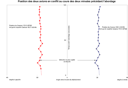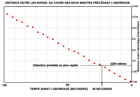 - Probabilité de détection, compte tenu de la géométrie de la collision et de la vitesse de rapprochement dans le cas du présent accident