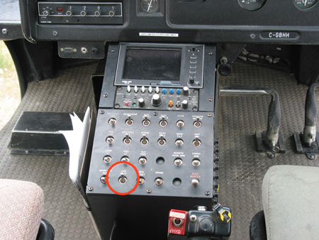 Il avait l'habitude de sélectionner HYD TEST sur le commutateur d'essai des accumulateurs hydrauliques situé sur la console centrale « VanIsle » (voir le cercle rouge sur la Photo 2) et de déplacer le manche de pas cyclique un certain nombre de fois (normalement de 12 à 15 sollicitations) dans deux sens donnés (longitudinalement et transversalement) pour vider les accumulateurs des servovérins. Le pilote effectuait habituellement ces deux tâches dans le même ordre chaque fois : d'abord le servovérin avant, puis les servovérins latéraux.