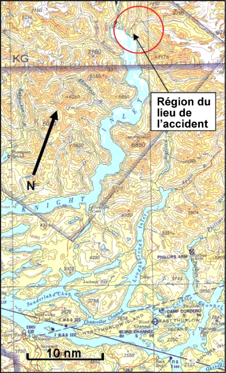Plus tôt ce jour-là, après avoir fait faire un vol de reconnaissance de la région aux deux spécialistes en exploitation forestière à la recherche de points de récupération potentiels, le pilote de l'hélicoptère avait atterri pour les déposer à un endroit situé sur la côte de l'océan, au-dessous du lieu de l'accident. Les spécialistes, qui évaluaient la région afin de déterminer si l'exploitation forestière y était possible, avaient gravi la paroi abrupte de la gorge avant de s'arrêter là où ils avaient jugé qu'ils pourraient remonter à bord l'hélicoptère. Ils avaient ensuite appelé le pilote pour qu'il viennent les récupérer. L'hélicoptère était stationné au camp de base, à quelque deux milles marins (nm). Le pilote a décollé en direction du lieu où ils se trouvaient et ils les a cherchés tout en maintenant le contact radio avec eux. Une fois que le pilote a eu repéré les passagers ainsi que le lieu où ils devaient embarquer, il a jugé l'endroit convenable et s'est rendu jusqu'à la zone de posé que ceux-ci avaient préparée. Le pilote n'avait encore jamais atterri à cet endroit (voir l'annexe A).