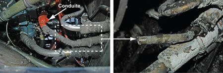 La conduite carburant étant en métal et munie de raccords faits d'un tuyau souple en caoutchouc et de colliers de serrage de tuyau souple, le risque de fuites à cause des différents taux de dilatation des matériaux était accru. Les caractéristiques d'étanchéité sont plus cruciales en raison des variations de température draconiennes en service, du vieillissement des tuyaux souples en caoutchouc et de la détérioration due à la chaleur. Le revêtement enveloppant et la gaine pare-feu risquent de dissimuler tout signe de fuite légère jusqu'à ce que la fuite ait augmenté considérablement. Les modifications indiquées dans le BS et la CN, lesquels exigeaient le remplacement de la conduite carburant, n'avaient pas été incorporées au C-GXKN.