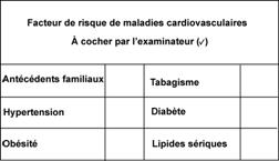 Le formulaire du Rapport d'examen médical de l'aviation civile de Transports Canada comporte un tableau (voir la figure 2) que l'examinateur peut utiliser pour signaler six facteurs de risque de maladies cardiovasculaires. Cependant, l'utilisation de ce tableau est volontaire et aucune directive explicite n'est fournie concernant la signification de la présence ou de l'absence de coches dans ce tableau. En 2006, le pilote répondait aux critères relatifs à trois de ces facteurs. Il n'en était fait aucune mention dans ce tableau; deux étaient mentionnés pour la première fois dans d'autres parties du formulaire. Ce tableau n'inclut pas l'âge comme facteur de risque de maladies cardiovasculaires, et l'âge n'est mentionné nulle part ailleurs sur ce formulaire, si ce n'est que l'on demande au candidat d'y inscrire sa date de naissance. Même si le tableau comporte une case réservée à l'inscription de toute information disponible à cet effet, les documents d'orientation ne renferment pas d'exigence en matière de vérification des lipides sériques.