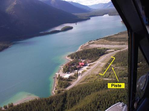 La compagnie utilisait deux pistes gravelées à Muncho Lake. La piste de l'hôtel était située au mille 462 de la route de l'Alaska, sur l'emprise de la route, immédiatement en face du Northern Rockies Lodge. Elle se trouvait à 2750 pieds au dessus du niveau de la mer (asl), et elle était orientée du sud est au nord ouest. Une enquête effectuée après l'accident a révélé que la piste mesurait environ 950 pieds de longueur et qu'elle avait une pente ascendante d'environ 2° vers le nord ouest. Les décollages s'effectuaient généralement en direction nord ouest en raison du relief élevé vers le sud est. La route de l'Alaska croisait la zone de montée initiale à environ 100 pieds au delà du seuil nord ouest de la piste.