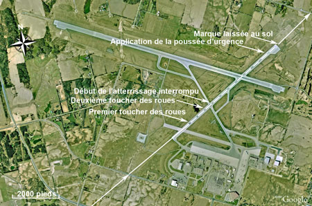 Après le deuxième toucher des roues, le commandant de bord a décidé de faire une remise des gaz et de ne pas s'arrêter sur la distance de piste restante. L'enquête a permis d'établir que l'avion aurait pu s'immobiliser sur la distance de piste restante qui était dégagée et mouillée. L'avion aurait aussi pu redécoller en toute sécurité à la suite d'une remise des gaz après le toucher des roues, si les déporteurs avaient été rentrés.