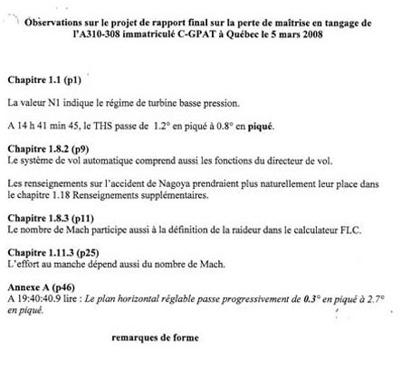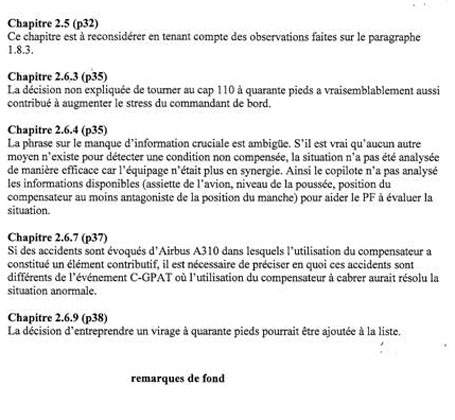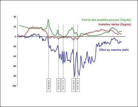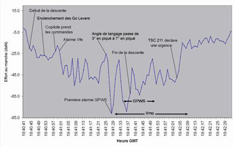 L'examen des données de vol a permis d'établir que l'équipage avait actionné à six reprises le compensateur électrique pendant les 54 secondes qu'a duré la descente. La durée de chacune des activations était d'environ une seconde.
