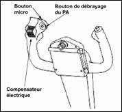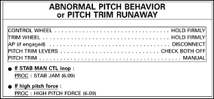 - électriquement par l'utilisation des commutateurs à bascule du compensateur électrique situés sur les volants (voir Figure 3). Il compense au taux de 0,9° par seconde lorsque la vitesse est en deçà de 200 nœuds et au taux de 0,17° par seconde au-dessus de 240 nœuds. Un signal sonore « Whooler » retentit lorsqu'il est actionné plus d'une seconde, et le volant de trim tourne dans le sens approprié. Le THS s'arrête automatiquement avant d'arriver en butée. L'appareil n'est pas muni d'un dispositif autre que l'indicateur de position de trim sur le volant de trim pour indiquer à l'équipage qu'une limite du compensateur est atteinte. Sur l'A310, comme sur les avions classiques, la force que le pilote doit exercer sur le manche est l'indication naturelle et facilement détectable qui permet au pilote de prendre conscience d'une condition non compensée. Pendant la mise en palier, le compensateur électrique a fonctionné pendant 3 secondes.