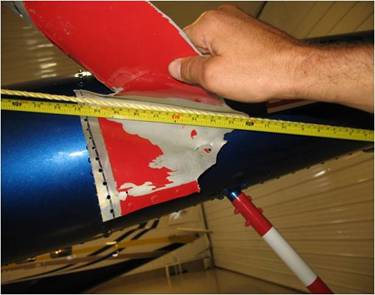 Tous les composants de l'ensemble rotor ont été retrouvés dans l'épave, à l'exception d'un morceau de pale du rotor principal. Le rotor principal comptait deux pales (la pale rouge et la pale bleue qui sont désignées ainsi pour faciliter leur identification). La pale rouge au complet était toujours fixée au pied de pale, mais le longeron principal était tordu et cassé à 60 pouces de l'emplanture; le bord de fuite, lui, était intact. La pale rouge présentait des signes d'impact avec la poutre de queue, signes qui correspondaient aux dommages relevés sur la poutre de queue (voir la Photo 2).