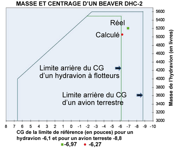 Il y avait à bord de chaque appareil des disques à calculer que les pilotes pouvaient utiliser pour calculer la masse et le centrage de l'appareil. Selon les calculs du pilote, la masse au décollage était de 5050 livres et le centre de gravité se situait à la limite arrière de la plage de centrage de l'hydravion (voir l'annexe A). Ces calculs étaient basés sur les poids standard d'été pour les passagers et un poids des bagages estimé à 176 livres.