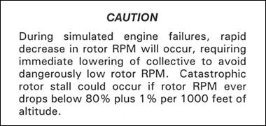 Une mise en garde publiée dans le POH (voir la figure 2) requiert d'augmenter le régime rotor à un minimum de 97 % au-dessous de 500 pieds agl.