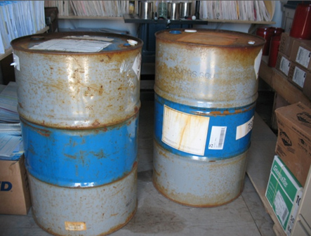 Le fournisseur a isolé les barils de 45 gallons d'AVGAS 100LL scellés des barils de solvants souillés, et a placé ces derniers à l'extrémité opposée de l'entrepôt de carburant.