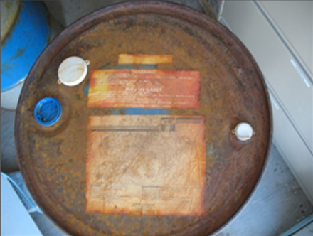 Au moment de l'accident, l'entrepôt de carburant était en rénovation. On nettoyait les vieux réservoirs de carburant et on construisait de nouveaux réservoirs. On utilisait les barils de 45 gallons d'AVGAS 100LL vides pour entreposer le carburant résiduel des conduits des vieux réservoirs ainsi que des solvants souillés, aussi appelés des produits hors spécification. Après que les barils aient été remplis de ces solvants souillés, ils ont été identifiés avec la marque AVGAZ Footnote 3 à l'aide d'un crayon de soudeur et ont été entreposés à environ 200 pieds des barils de 45 gallons d'AVGAS 100LL scellés et montés sur les palettes. Le deuxième baril de 45 gallons utilisé pour ravitailler l'aéronef accidenté affichait une marque AVGAZ presque effacée ainsi que la marque originale 100LL AVGAS. Le baril se trouvait près des barils scellés d'AVGAS 100LL.