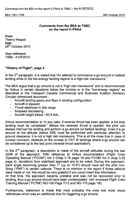 - Quand l'avion s'est placé en vue de l'arrondi, le commandant de bord a pris la décision d'effectuer l'atterrissage parce qu'il croyait qu'une remise des gaz sécuritaire n'était plus possible.