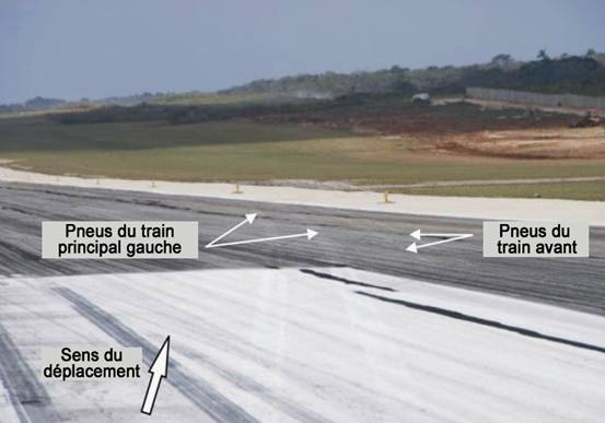 Les photos de la piste prises après l'incident montrent des traces de roulement blanches situées près du point d'atterrissage de l'avion qui semblent avoir été chauffées à la vapeur (voir la photo 3).