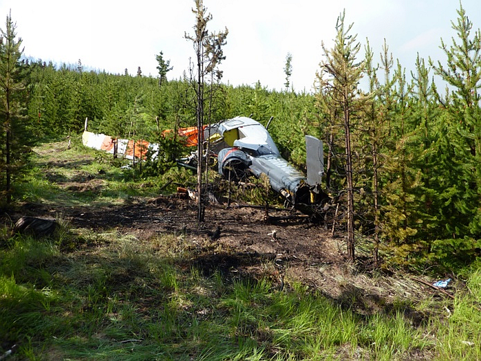 L’hélicoptère Bell 214B-1 (immatriculation C-GTWV, numéro de série 28048) de Transwest Helicopters Ltd., avec 2 pilotes à bord, participe à des activités de lutte contre les incendies approximativement 20 milles marins au nord-ouest de Lillooet (Colombie-Britannique). À 11 h 24, heure avancée du Pacifique, après avoir rempli le réservoir héliporté, l’hélicoptère s’approche de sa cible près de la vallée d’un ruisseau. Alors que l’hélicoptère ralentit et commence à descendre au-delà d’une crête dans la vallée du ruisseau, le moteur perd de la puissance. Le commandant de bord, qui occupe le siège de gauche, tourne immédiatement l’hélicoptère vers la gauche pour remonter au-dessus de la crête en vue de se rendre à une clairière, largue le réservoir et l’élingue longue de 130 pieds du crochet ventral et descend vers une zone à découvert pour atterrir. L’hélicoptère se pose brutalement sur un relief accidenté en pente et se retourne par l’avant. Lorsqu’une des pales avançantes du rotor principal heurte le sol, la cellule est en position quasi verticale en piqué, ce qui fait ensuite pivoter le fuselage de sorte que l’hélicoptère atterrit sur le côté gauche. Un petit incendie se déclare après l’impact. Le commandant de bord subit une commotion cérébrale et perd connaissance. Le copilote réussit à s’en sortir avec des blessures mineures et à extirper le commandant de bord de l’épave. Le commandant de bord reprend connaissance quelques minutes plus tard. L’hélicoptère est lourdement endommagé. La radiobalise de repérage d’urgence de 406 MHz s’active, mais le raccord de fixation de l’antenne est brisé; par conséquent, le réseau de satellites de recherches et sauvetage ne reçoit aucun signal.