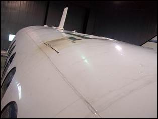 Le feu s'est déclaré à la station 236Footnote 3, au–dessus de la cabine, du côté gauche. L'appareil a subi des dommages importants au revêtement extérieur entre les stations 236.25 et 246.75 du côté gauche, sur le dessus de la cabine (voir la photo 1). Suite à l'incident, une partie du revêtement extérieur a dû être remplacée ainsi que tout le matériau isolant et les blocs d'alimentation électrique des lumières fluorescentes ont été changés par des modèles plus récents.