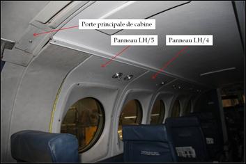 Deux panneaux de revêtement intérieur ont subi des dommages par le feu. Le panneau identifié LH/5 se trouve juste à l'avant de la porte principale du côté gauche, alors que le panneau LH/4 est adjacent au premier, vers l'avant de l'appareil (voir la photo 2). Ces deux panneaux ont été acheminés au laboratoire du BST à Ottawa afin de déterminer l'origine de l'incendie.