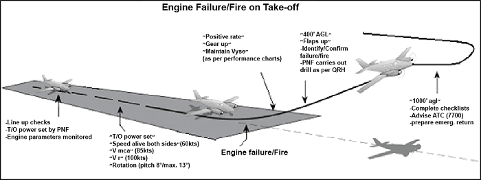 Il est important de souligner que les pannes ou les problèmes de moteur au décollage sont une des situations d’urgence les plus complexes à gérer sur un bimoteur léger. Lorsqu’une panne ou un problème de moteur survient immédiatement après le décollage, un équipage n’a pas le temps de consulter la procédure appropriée avant de prendre les mesures correctives. Lors de leur formation, les pilotes apprennent les actions critiques à prendre dans une telle situation, soit d’appliquer pleine puissance, s’assurer que le train d’atterrissage est monté, identifier correctement le moteur en panne et mettre en drapeau l’hélice du moteur panne.