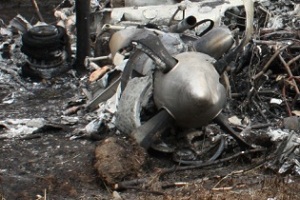 Une grande partie de l’aéronef a été consumée par les flammes, d’où l’impossibilité d’examiner la totalité de l’aéronef et tous ses composants. Seuls les moteurs, les hélices et quelques parties externes de la queue étaient reconnaissables.