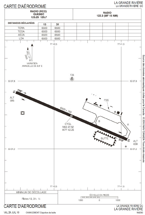- élévation de l'aéroport de La Grande Rivière de 640 asl.