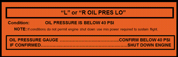 Les pilotes ont décidé d’effectuer l’approche normalement, à moins que la pression d’huile chute sous les 40 livres par pouce carré (lb/po²); le cas échéant, ils suivraient la liste de vérifications en cas d’urgence ainsi que les procédures de vol sur un seul moteur (figure 2). Ces procédures exigent notamment d’augmenter la vitesse VREF de 10 nœudsNote de bas de page 2 et de mettre l’hélice en drapeauNote de bas de page 3.