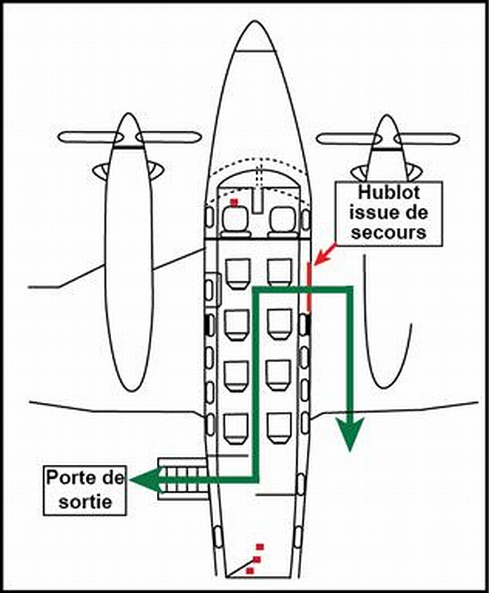 L’exposé sur les mesures de sécurité donné aux passagers par le copilote avant le départ a permis à un des passagers d’ouvrir la porte, qui s’est avérée la seule issue possible. La porte était coincée, mais a finalement pu être ouverte de l’intérieur. L’hublot issue de secours était situé sur l’aile, et en raison de l’incendie qui s’était déclaré à l’extérieur à cet endroit, elle n’a pu être utilisée.