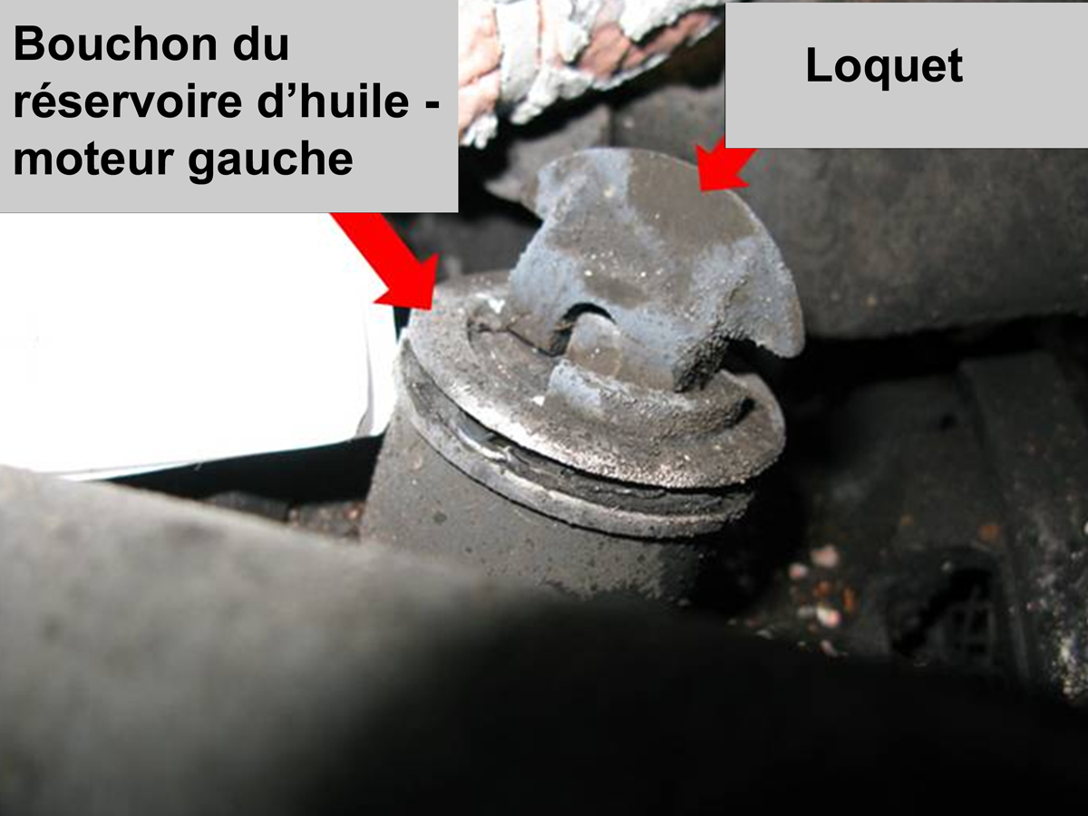 - Durant la maintenance habituelle, il est probable que le bouchon du réservoir d’huile du moteur gauche n’a pas été verrouillé.