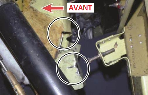 Les butées de commande secondaires sont situées sur le guignol de gouverne de profondeur avant. Le fait de tirer ou de pousser le manche au-delà des positions des butées de commande primaires a pour effet d'étirer les câbles de gouverne de profondeur. Si on continue de déplacer le manche, il y aura contact avec les butées secondaires.