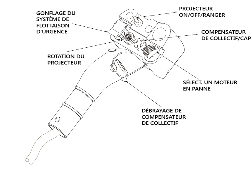 - Avant d'activer une fonction de pilote automatique, QUELLE QU'ELLE SOIT – GA, IAS, ALT, VS, etc. – le pilote ne doit PAS exercer de pression sur la commande de collectif ou le cyclique. La moindre pression va causer une erreur dans le système et faire entrer l'aéronef dans une assiette imprévue.