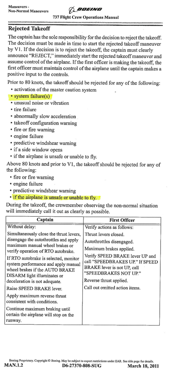 Appendix B - Boeing 737-800FCOM - Reject information<sup id="fn34-rf"><a class="fn-lnk" href="#fn34"><span class="wb-inv">Footnote </span>34</a></sup>
