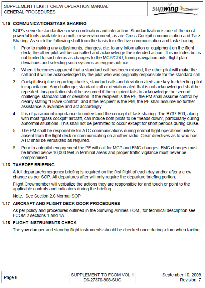 Manuel d’exploitation de l’équipage de conduite de Sunwing Airlines